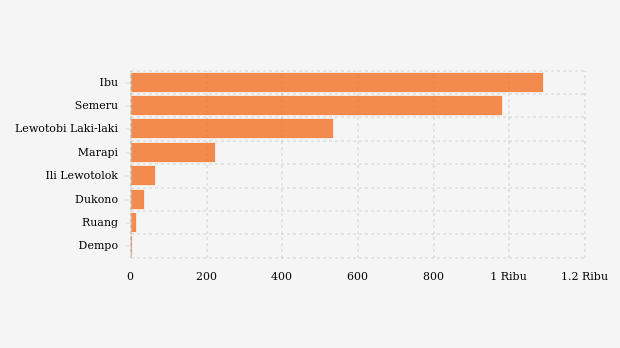 Selama tahun 2024, MAGMA Indonesia telah merekam 2.941 letusan/erupsi gunung api di seluruh Indonesia. Gunung Ibu di Maluku Utara paling banyak erupsi dengan 1.090 kali letusan.