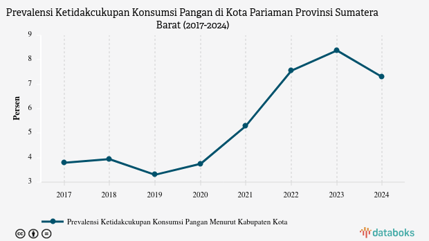 Merujuk data Badan Pusat Statistik (BPS), prevalensi ketidakcukupan pangan (Prevalence of Undernourishment/PoU) di Kota Pariaman, Sumatera Barat mencapai 7,3% pada 2024.