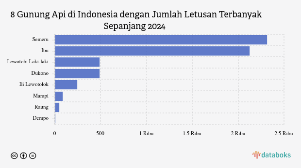 Selama tahun 2025, MAGMA Indonesia telah merekam 5.790 letusan/erupsi gunung api di seluruh Indonesia. Gunung Semeru di Jawa Timur paling banyak erupsi (2.312 kali letusan) sedangkan Gunung Ibu erupsi 2.124 kali.