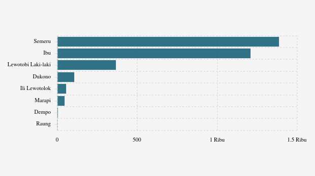 Selama tahun 2025, MAGMA Indonesia telah merekam 3.162 letusan/erupsi gunung api di seluruh Indonesia. Gunung Semeru di Jawa Timur paling banyak erupsi dengan 1.386 kali letusan.