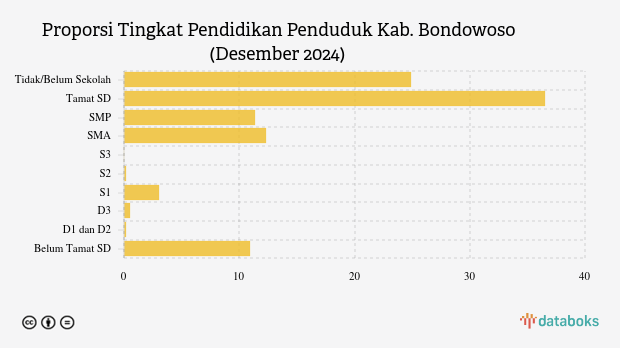 Berikut ini rincian jumlah penduduk Kabupaten Bondowoso, Jawa Timur menurut jenjang pendidikan per Desember 2024.