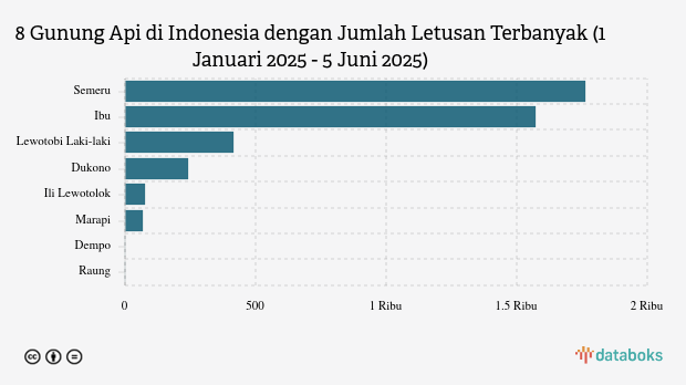 Gunung Ibu di Maluku Utara kembali erupsi pada Kamis (5/6/2025) pukul 11.55 WIT. Dalam sepekan terakhir, Gunung Ibu sudah erupsi 35 kali.