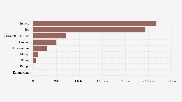 Selama tahun 2025, MAGMA Indonesia telah merekam 6.756 letusan/erupsi gunung api di seluruh Indonesia. Gunung Semeru di Jawa Timur paling banyak erupsi (2.668 kali letusan) sedangkan Gunung Ibu erupsi 2.429 kali.