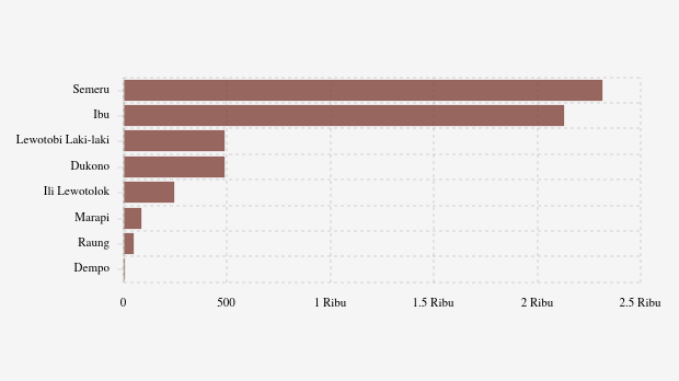 Melansir informasi letusan dari Pusat Vulkanologi dan Mitigasi Bencana Geologi (PVMBG) melalui aplikasi MAGMA Indonesia, tinggi kolom abu teramati mencapai None meter di atas puncak atau None meter di atas permukaan laut.