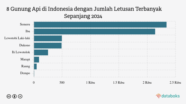 Selama tahun 2025, MAGMA Indonesia telah merekam 5.856 letusan/erupsi gunung api di seluruh Indonesia. Gunung Semeru di Jawa Timur paling banyak erupsi dengan 2.343 kali letusan.