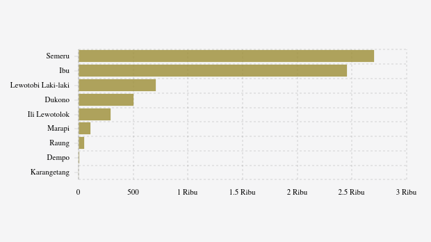 Melansir informasi letusan dari Pusat Vulkanologi dan Mitigasi Bencana Geologi (PVMBG) melalui aplikasi MAGMA Indonesia, tinggi kolom abu teramati mencapai 400 meter di atas puncak atau 1.725 meter di atas permukaan laut.