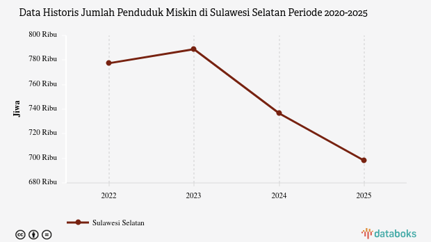 Jumlah penduduk miskin di Sulawesi Selatan pada Maret 2025, berkurang 13,64 ribu jiwa menjadi 698,13 ribu jiwa dibandingkan dengan September 2024. Sementara jika dibandingkan dengan Maret 2024, Jumlah penduduk miskin juga tercatat turun dari sebelumnya yang mencapai 736,48 ribu jiwa.