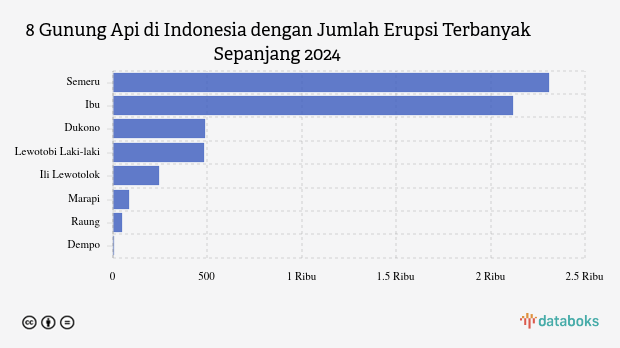 Selama tahun 2025, MAGMA Indonesia telah merekam 5.780 letusan/erupsi gunung api di seluruh Indonesia. Gunung Semeru di Jawa Timur paling banyak erupsi (2.309 kali letusan) sedangkan Gunung Lewotobi Laki-laki erupsi 482 kali.