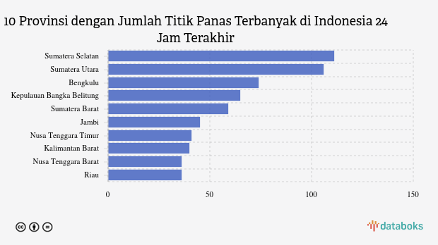 Titik panas terdeteksi paling banyak berada di Sumatera Selatan sebanyak 111 titik. Sumatera Utara menempati posisi kedua jumlah titik panas terbanyak dengan 106 titik. Bengkulu berada di posisi ketiga sebanyak 74 titik panas.