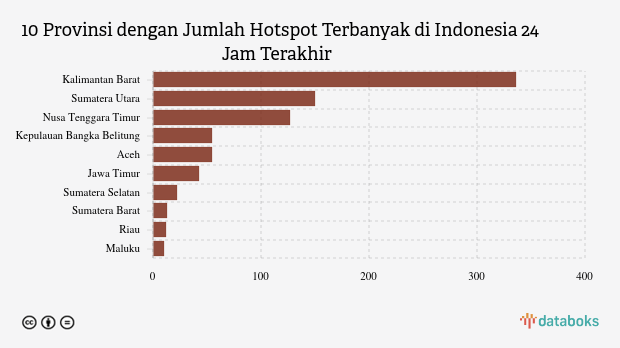 Titik panas terdeteksi paling banyak berada di Kalimantan Barat sebanyak 336 titik. Sumatera Utara menempati posisi kedua jumlah titik panas terbanyak dengan 150 titik. Nusa Tenggara Timur berada di posisi ketiga sebanyak 127 titik panas.