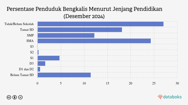 Berikut ini rincian jumlah penduduk Kabupaten Bengkalis, Riau menurut jenjang pendidikan per akhir 2024.
