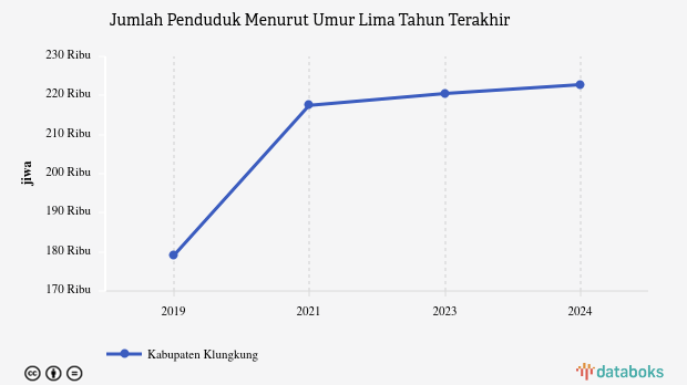 Jumlah penduduk di Kabupaten Klungkung tercatat 222,76 ribu jiwa data per 2024. Angka ini dalam sembilan tahun berturut-turut tercatat naik. Dibandingkan dengan lima tahun sebelumnya, rata-rata pertumbuhan tahunan (CAGR) wilayah ini tercatat lebih tinggi. Adapun pertumbuhan lima tahun terakhir, tercatat diangka 4,55%.