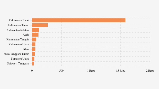 Titik panas terdeteksi paling banyak berada di Kalimantan Barat sebanyak 1584 titik. Kalimantan Timur menempati posisi kedua jumlah titik panas terbanyak dengan 267 titik. Kalimantan Selatan berada di posisi ketiga sebanyak 118 titik panas.
