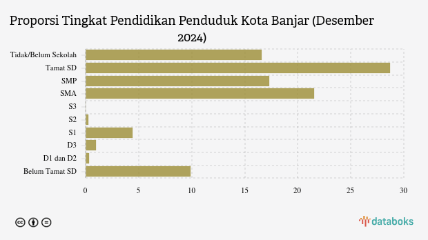 Berikut ini rincian jumlah penduduk Kota Banjar, Jawa Barat menurut jenjang pendidikan per Desember 2024.
