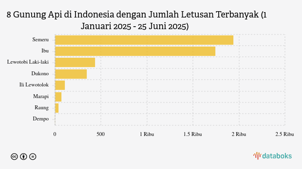 Selama tahun 2025, MAGMA Indonesia telah merekam 4.673 letusan/erupsi gunung api di seluruh Indonesia. Gunung Semeru di Jawa Timur paling banyak erupsi (1.939 kali letusan) sedangkan Gunung Dukono erupsi 342 kali.