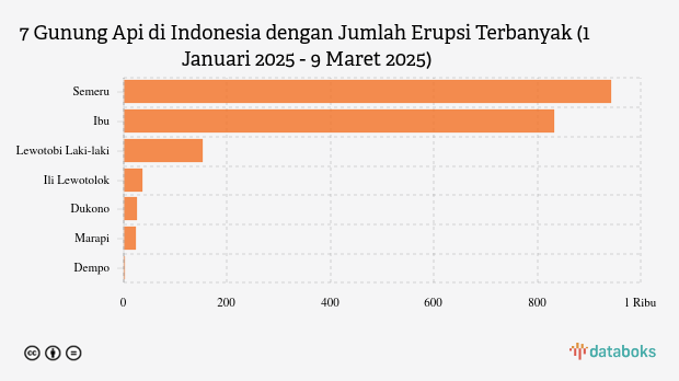 Selama tahun 2025, MAGMA Indonesia telah merekam 2.014 letusan/erupsi gunung api di seluruh Indonesia. Gunung Semeru di Jawa Timur paling banyak erupsi (942 kali letusan) sedangkan Gunung Dukono erupsi 25 kali.