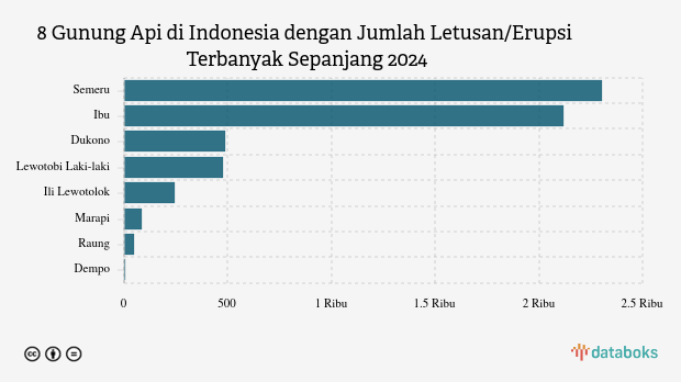 Selama tahun 2025, MAGMA Indonesia telah merekam 5.770 letusan/erupsi gunung api di seluruh Indonesia. Gunung Semeru di Jawa Timur paling banyak erupsi dengan 2.306 kali letusan.