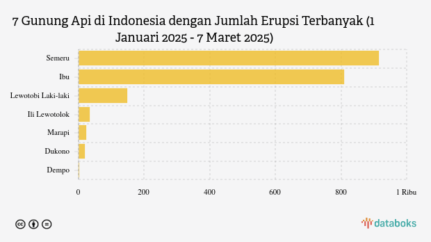 Selama tahun 2025, MAGMA Indonesia telah merekam 1.951 letusan/erupsi gunung api di seluruh Indonesia. Gunung Semeru di Jawa Timur paling banyak erupsi (916 kali letusan) sedangkan Gunung Ibu erupsi 809 kali.