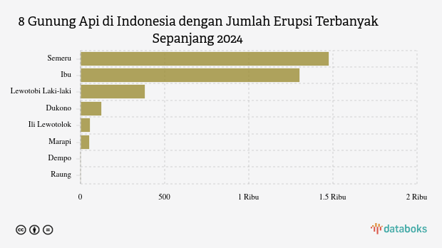 Selama tahun 2025, MAGMA Indonesia telah merekam 3.386 letusan/erupsi gunung api di seluruh Indonesia. Gunung Semeru di Jawa Timur paling banyak erupsi dengan 1.473 kali letusan.