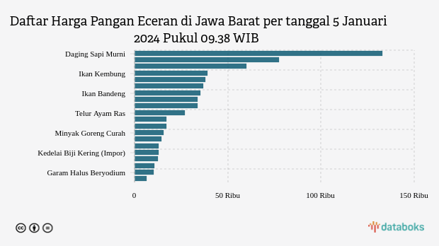 Berikut daftar lengkap harga 20 bahan pangan di Jawa Barat menurut Bapanas per tanggal 5 Januari 2024 pukul 09.38 WIB.