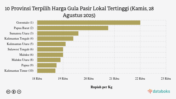 Harga Gula Pasir Lokal di Gorontalo Termahal Nasional (Kamis, 28 Agustus 2025)