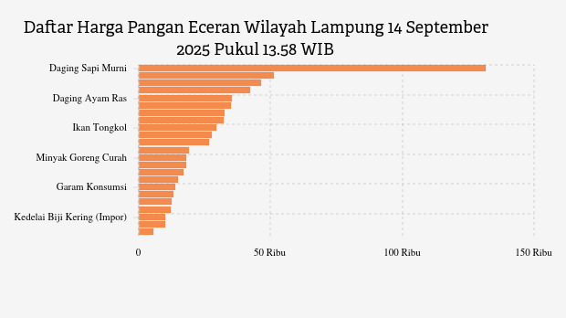Berikut daftar lengkap harga 23 bahan pangan di Lampung menurut Bapanas 14 September 2025 pukul 13.58 WIB.