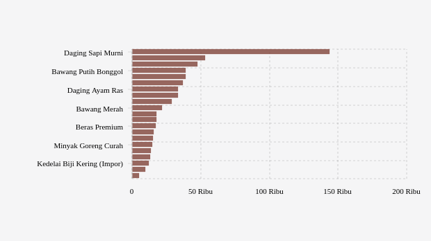 - Daging Sapi Murni: Rp143.990 per kg (naik 0,81%)