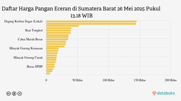 Berikut daftar lengkap harga 24 bahan pangan di Sumatera Barat menurut Bapanas 26 Mei 2025 pukul 13.18 WIB.