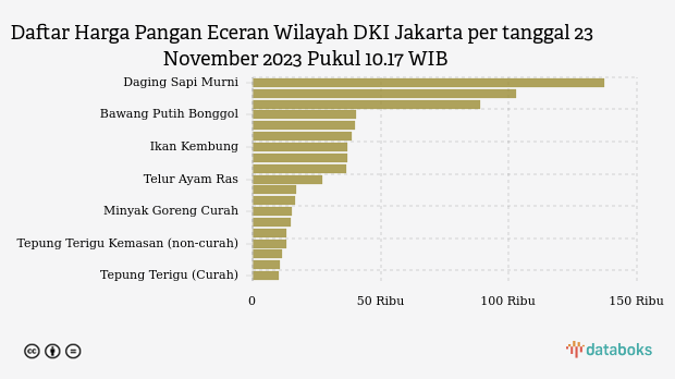 Berikut daftar lengkap harga 19 bahan pangan di DKI Jakarta menurut Badan Pangan Nasional (Bapanas) per tanggal 23 November 2023 pukul 10.17 WIB.