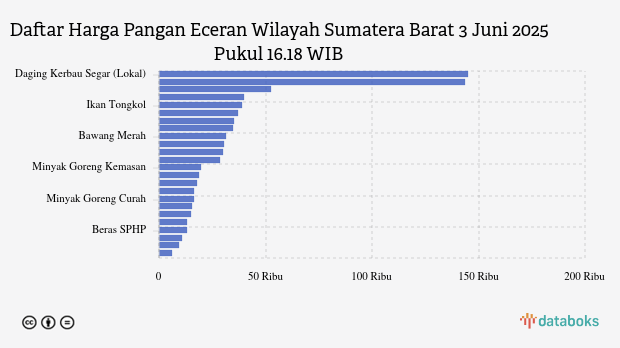 Berikut daftar lengkap harga 24 bahan pangan di Sumatera Barat menurut Bapanas 3 Juni 2025 pukul 16.18 WIB.