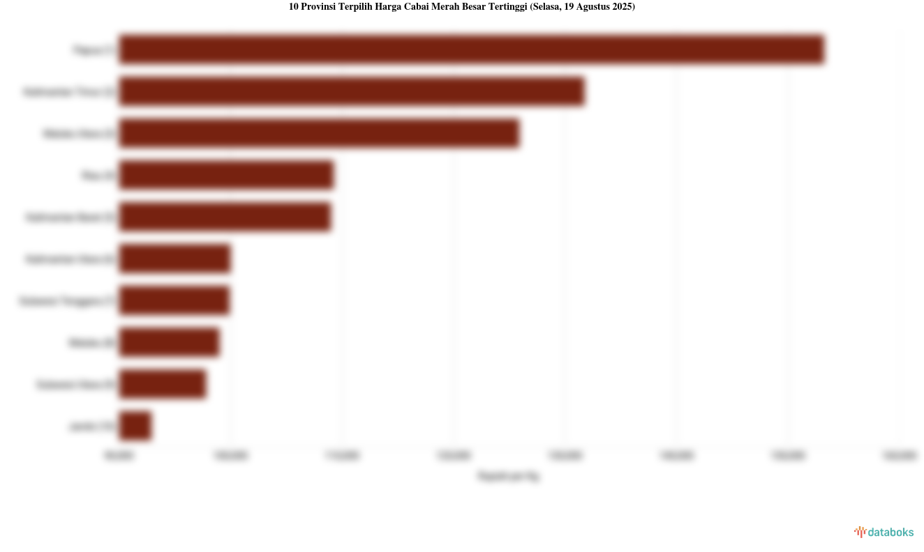 Harga cabai merah besar harian di pasar modern Papua menjadi yang termahal se-Indonesia dengan harga jual Rp.153,25 ribu per kg. Dibandingkan sebulan lalu, harga cabai merah besar di provinsi ini tidak mengalami perubahan. Harga jual tertinggi yang pernah dicatat di wilayah ini adalah Rp.153,25 ribu per kg.