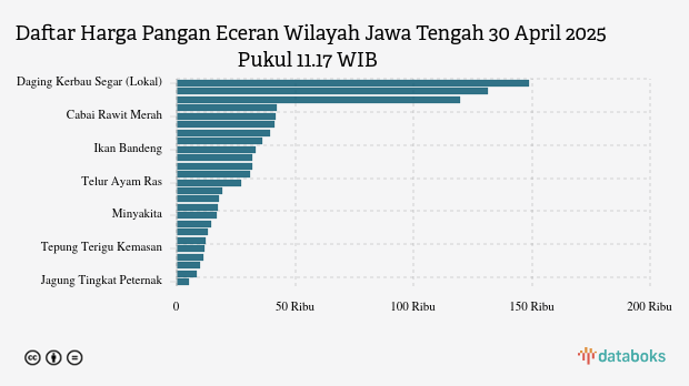 Berikut daftar lengkap harga 25 bahan pangan di Jawa Tengah menurut Bapanas 30 April 2025 pukul 11.17 WIB.