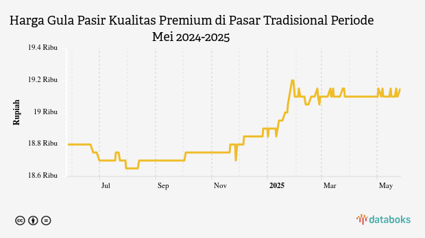 Sedangkan harga gula pasir kualitas premium harian di pasar tradisional dalam tiga bulan terakhir di Jawa Barat telah mengalami kenaikan sebesar 1,32% dari sebelumnya yang diperdagangkan Rp18,9 ribu.