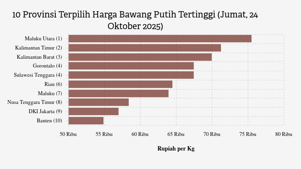 Harga Bawang Putih di 10 Provinsi Ini Paling Mahal (Jumat, 24 Oktober 2025)
