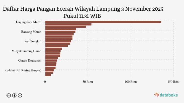 Berikut daftar lengkap harga 23 bahan pangan di Lampung menurut Bapanas 3 November 2025 pukul 11.31 WIB.