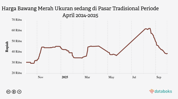 Harga Bawang Merah Ukuran sedang di Pasar Tradisional Periode Oktober 2024-2025
