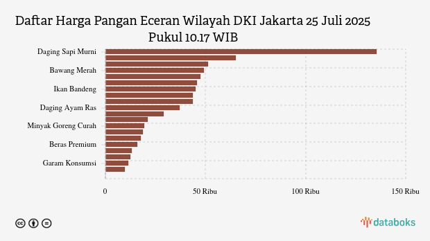 Berikut daftar lengkap harga 21 bahan pangan di DKI Jakarta menurut Bapanas 25 Juli 2025 pukul 10.17 WIB.