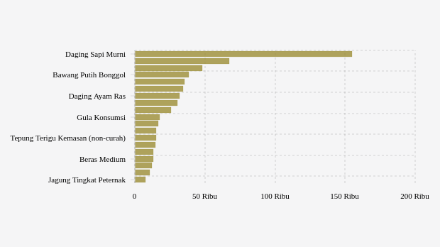- Daging Sapi Murni: Rp154.830 per kg (naik 1,44%)