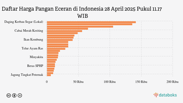 Berikut daftar lengkap harga 25 bahan pangan di Indonesia menurut Bapanas 28 April 2025 pukul 11.17 WIB.