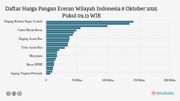 Berikut daftar lengkap harga 25 bahan pangan di Indonesia menurut Bapanas 8 Oktober 2025 pukul 09.13 WIB.