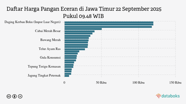 Berikut daftar lengkap harga 25 bahan pangan di Jawa Timur menurut Bapanas 22 September 2025 pukul 09.48 WIB.