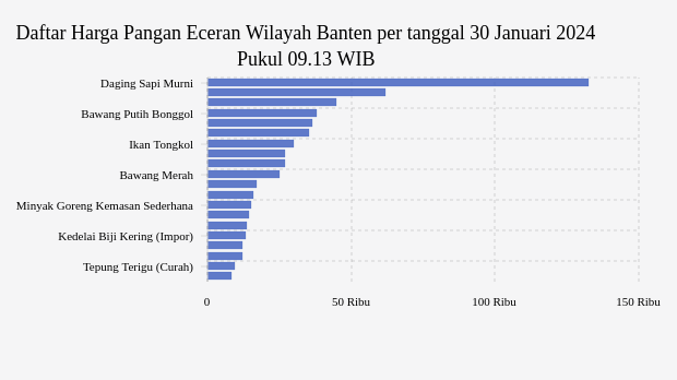Berikut daftar lengkap harga 20 bahan pangan di Banten menurut Bapanas per tanggal 30 Januari 2024 pukul 09.13 WIB.