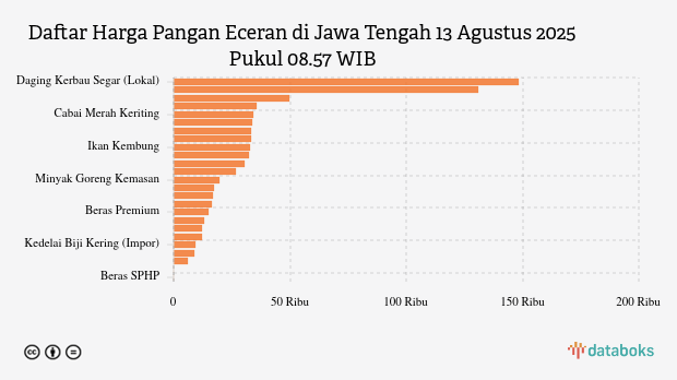 Berikut daftar lengkap harga 25 bahan pangan di Jawa Tengah menurut Bapanas 13 Agustus 2025 pukul 08.57 WIB.