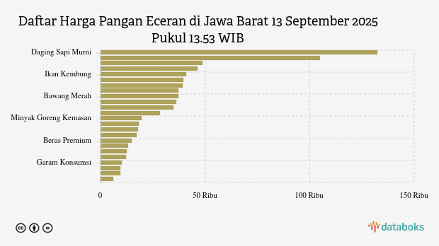 Berikut daftar lengkap harga 24 bahan pangan di Jawa Barat menurut Bapanas 13 September 2025 pukul 13.53 WIB.