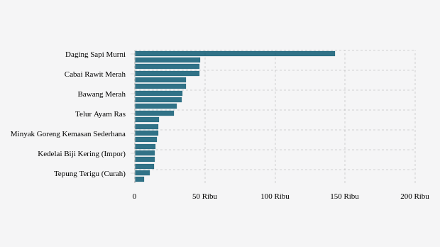 - Gula Konsumsi: Rp17.000 per kg (turun 0,06%)