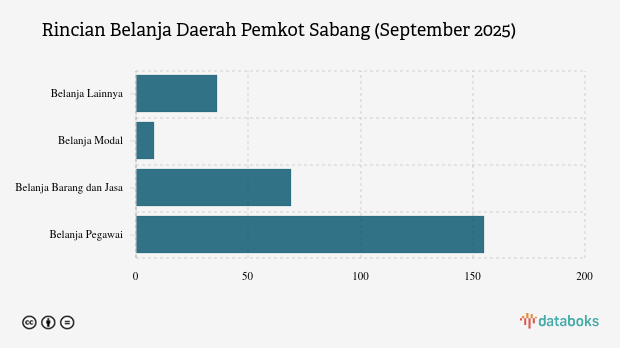 Merujuk data Anggaran Pendapatan dan Belanja Daerah (APBD) 2025, anggaran Belanja Daerah Pemerintah Kota (Pemkot) Sabang, Provinsi Aceh, sebesar Rp598,25 miliar.