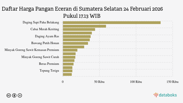 Berikut daftar lengkap harga 16 bahan pangan di Jawa Barat menurut SP2KP Kemendag 24 Februari 2026 pukul 17.28 WIB.
