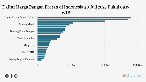 Berikut daftar lengkap harga 25 bahan pangan di Indonesia menurut Bapanas 30 Juli 2025 pukul 09.17 WIB.