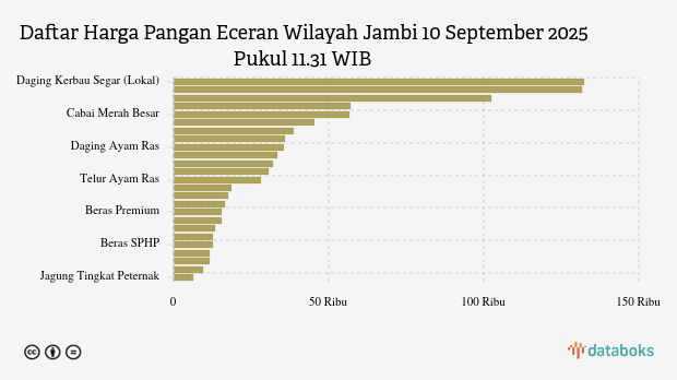 Berikut daftar lengkap harga 25 bahan pangan di Jambi menurut Bapanas 10 September 2025 pukul 11.31 WIB.