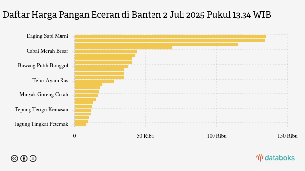 Berikut daftar lengkap harga 25 bahan pangan di Banten menurut Bapanas 2 Juli 2025 pukul 13.34 WIB.